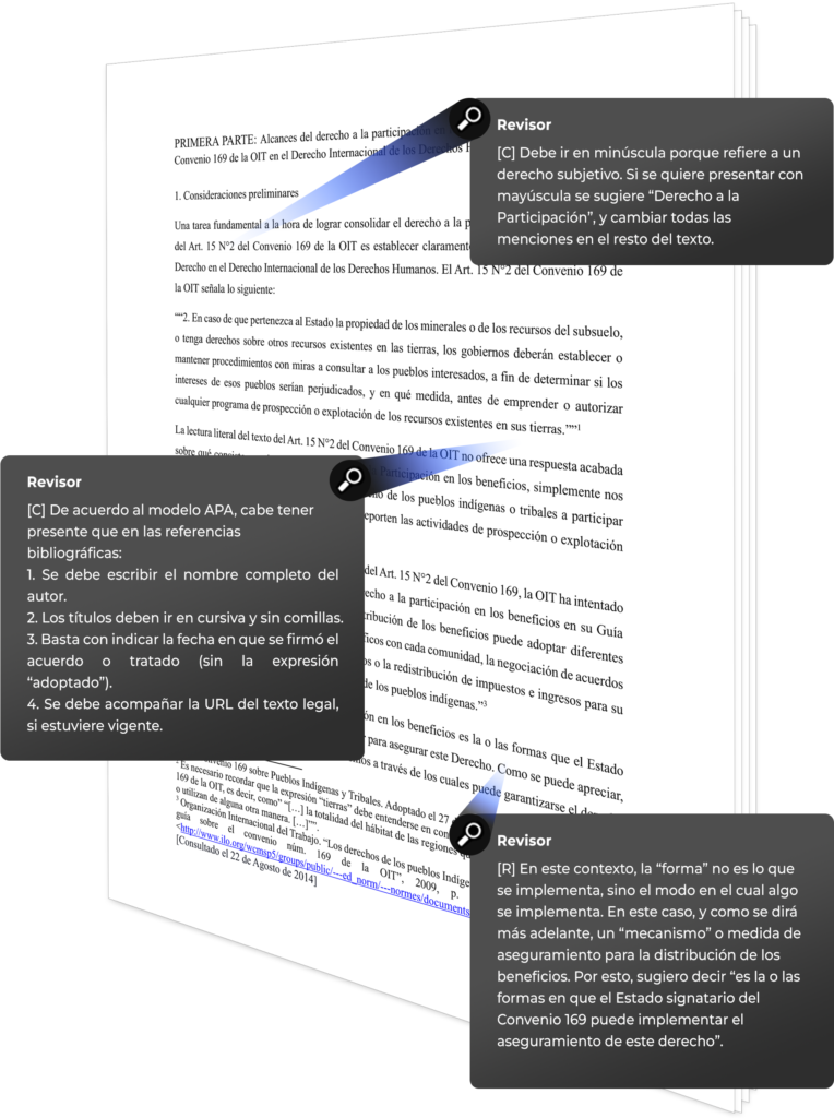 ▪ Revisión del uso del léxico jurídico y del lenguaje en general. ▪ Corrección de referencias bibliográficas según normas (APA, MLA, Chicago-Deusto, ISO 690, u otra según se necesite).